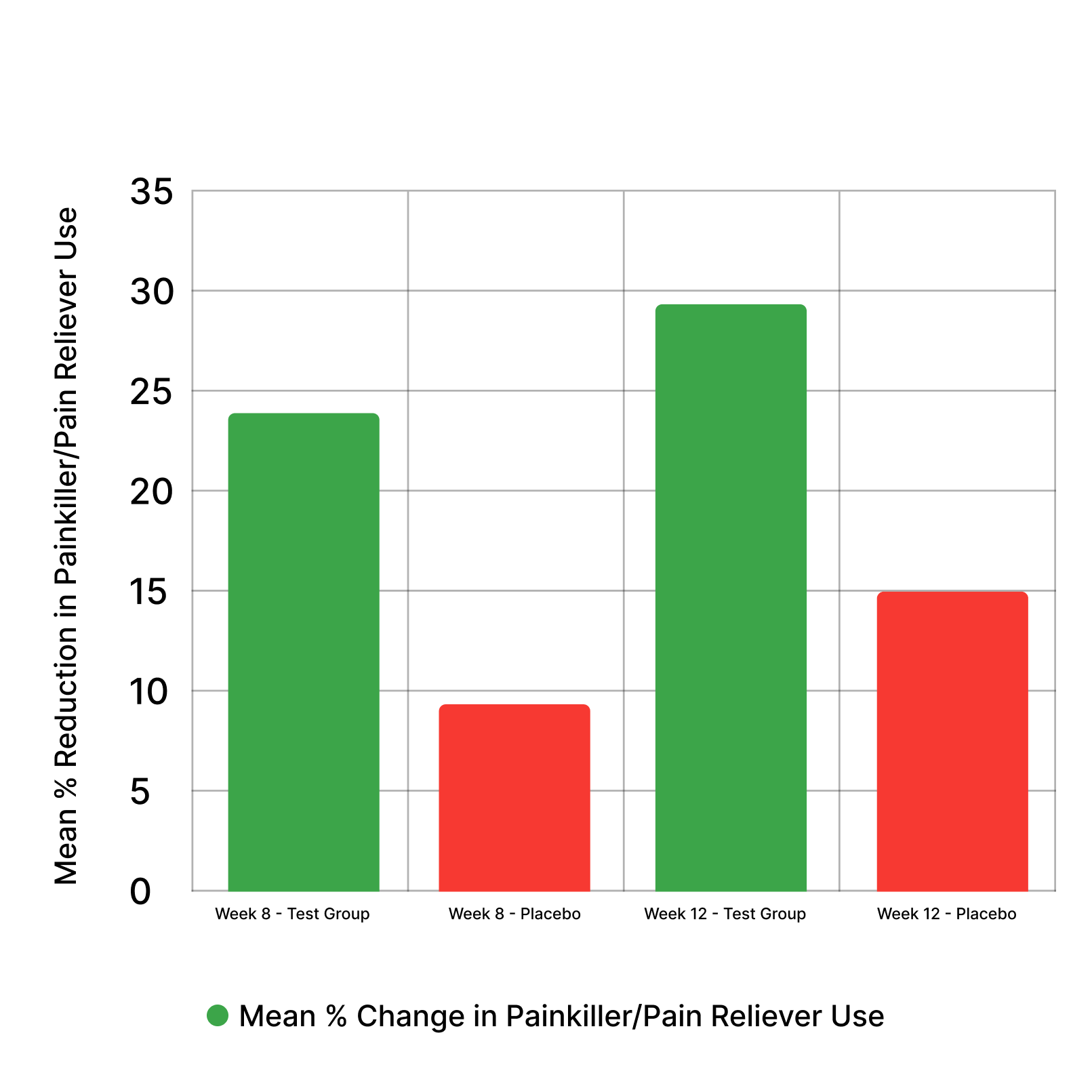 A -23.39% decrease in the frequency of traditional painkiller use (vs. -9.17% placebo) highlights a potential benefit in reducing dependence on medications like Tylenol or NSAIDs, appealing to those seeking non-pharmaceutical alternatives.*