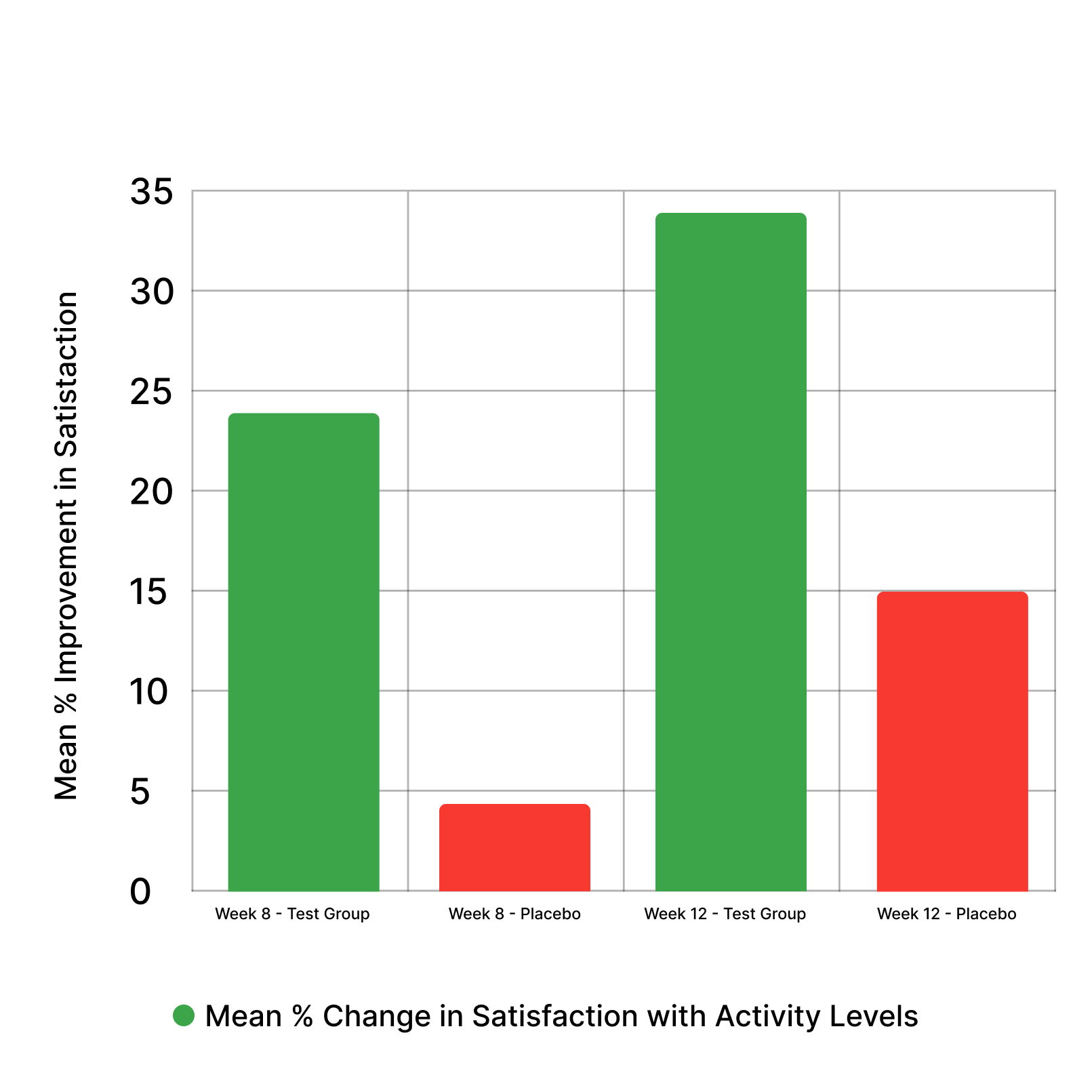 Satisfaction with activity levels means how happy you feel about doing your daily tasks—like cleaning or walking—without joint discomfort holding you back. In the study, Remedolor users reported up to 32% more satisfaction by Week 12.